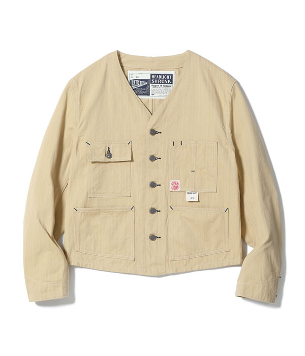 1930〜40年代のヘッドライト製オールインワンのデッドストックから分析して、ピッチの異なる綾がランダムに配列された大変珍しいへリンボーンツイルを作製。型は他メーカーではあまり見られない袖付きのベスト >>> 続きを読む