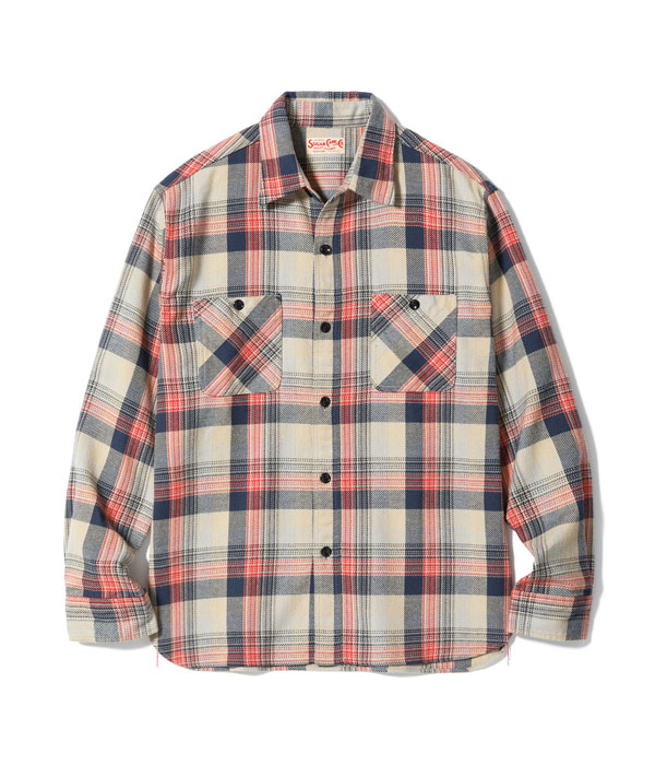 1930~40年代のウールジャケットのライニングに使用されていたチェック生地をベースにコットン100%にアレンジしてリリース。経糸5色×緯糸4色のクラシカルなチェックは糸をやや太番手にしてワークシャツ用に仕上げている。生産の効率化のため時代の流れとともに省略されてしまったカーブした背ヨークや、補強の脇の力布が特徴。